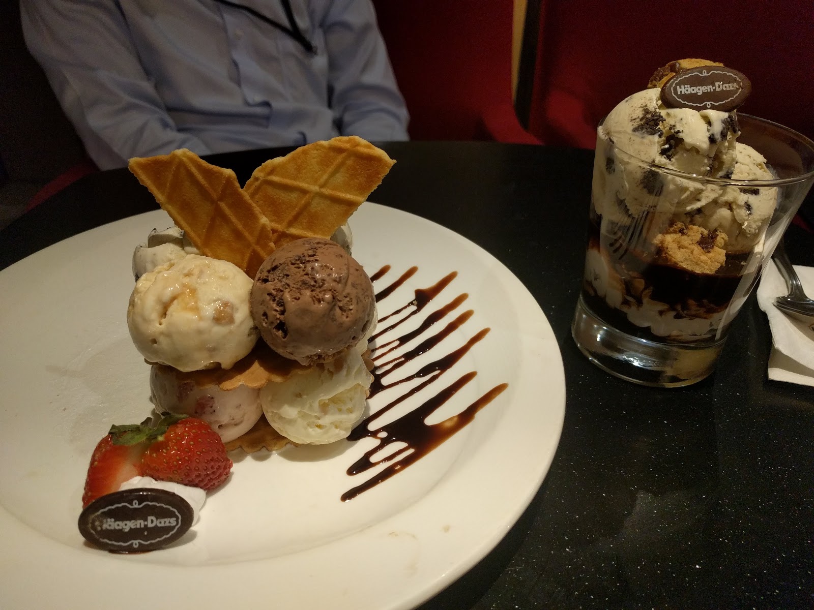 After we walked around the street for a bit and settled on Haagen Dazs ice cream. The place had a menu!!I couldn’t believe it!! So he let me decide what we would share. I picked this thing with 8 scoops of ice cream (equivalent to 3 American scoops) and a cookie parfait thing. We split them and they were amazing !!