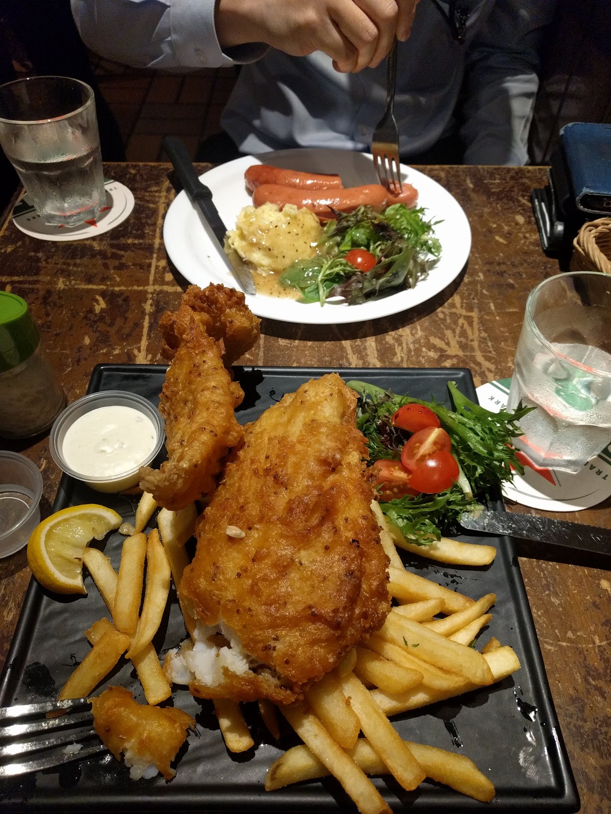 We went to a German place for dinner. I ordered fish and chips and it was HUGE!! So I couldn’t finish it all. The fish was amazing, and the chips were right on. Lam got some pork sausage which came with mashed potatoes. He was super kind and treated me to dinner!!