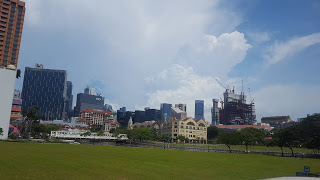1. 25% of Singapore is reclaimed land. As in they imported sand to make new land (reclaimed from the water??) This new land is what the new financial district is being built on currently. Buildings are tall, sparkly and new.