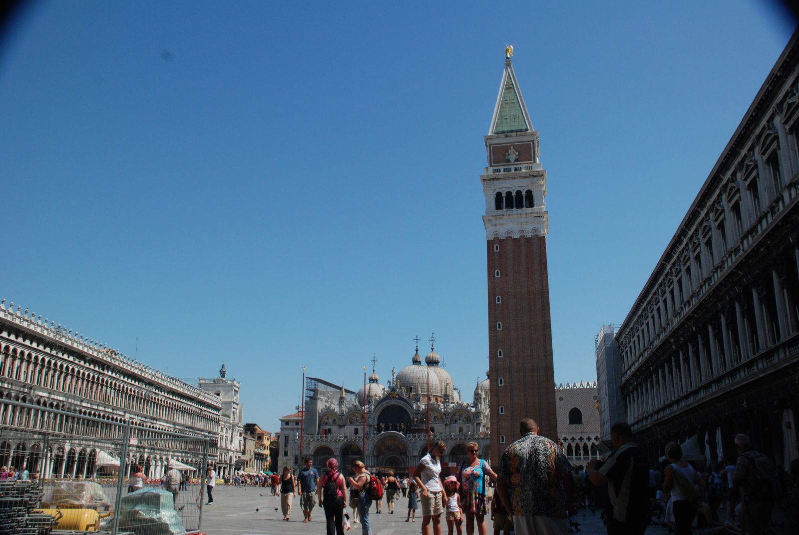 Today dad and I got to eat breakfast right out on the water again! Its beautiful! We headed to St. Marks Square to go see the church, thank goodness for my Rick Steves book, because we skipped the BIG, LONG line and headed to the bag check, and got to skip the line! They assume youve waited in line, and have been told you cant take it in, so they let you cut the line, so you dont have to wait again. St. Marks church is all wavey inside, the floor is all wavey and yet stays together, all because of all the flooding theyve had over all the years. Last time I was here, it was just me, Jer and Dee, but this time there were like 1000 people in there! So it was a little disapointing. After that we headed to the new bell tower (new meaning built in like 1910, because the old lighthouse fell in 1902). Dad agreed to see this tower, because it had an elevator. The pictures will be beautiful once I get them up online, it was just so amazing to see all the different views from the top! We people watched again after that, in the shade of course, its just so fun to see where everyone is from!