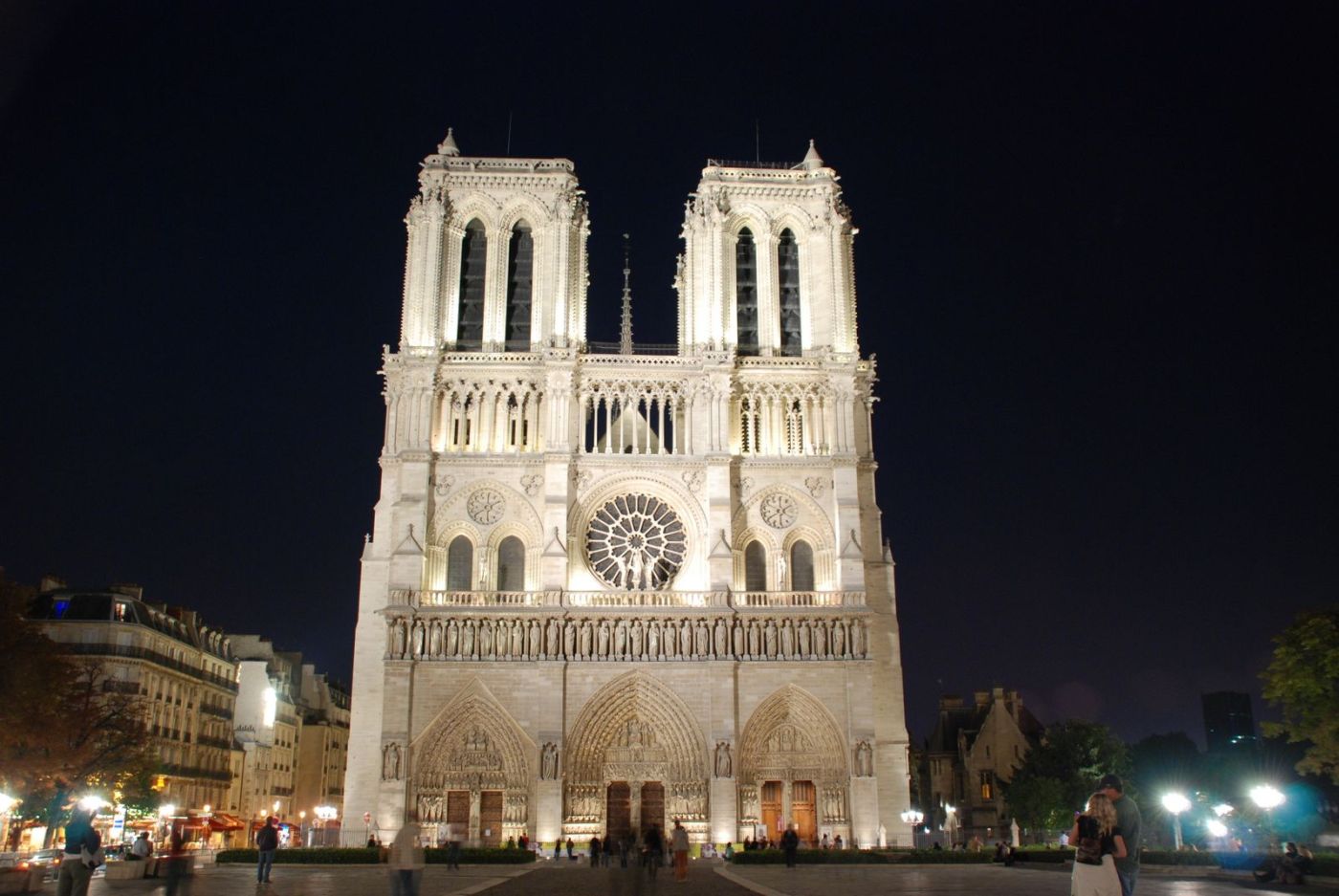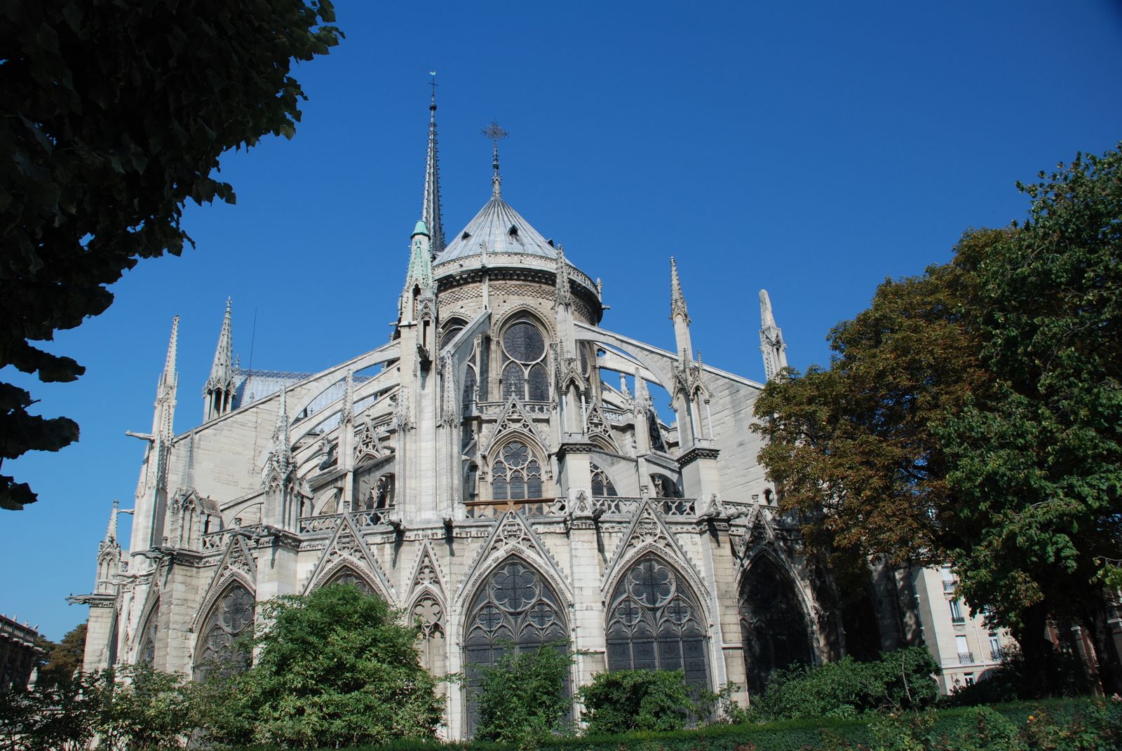 Construction of Notre Dame started in 1163, completed around 1250. Additions and remodels have take place since then as well. The spire was renovated in the 19th century, being completed by wood covered in lead. It makes it very heavy, and will do significant damage if/when it falls.