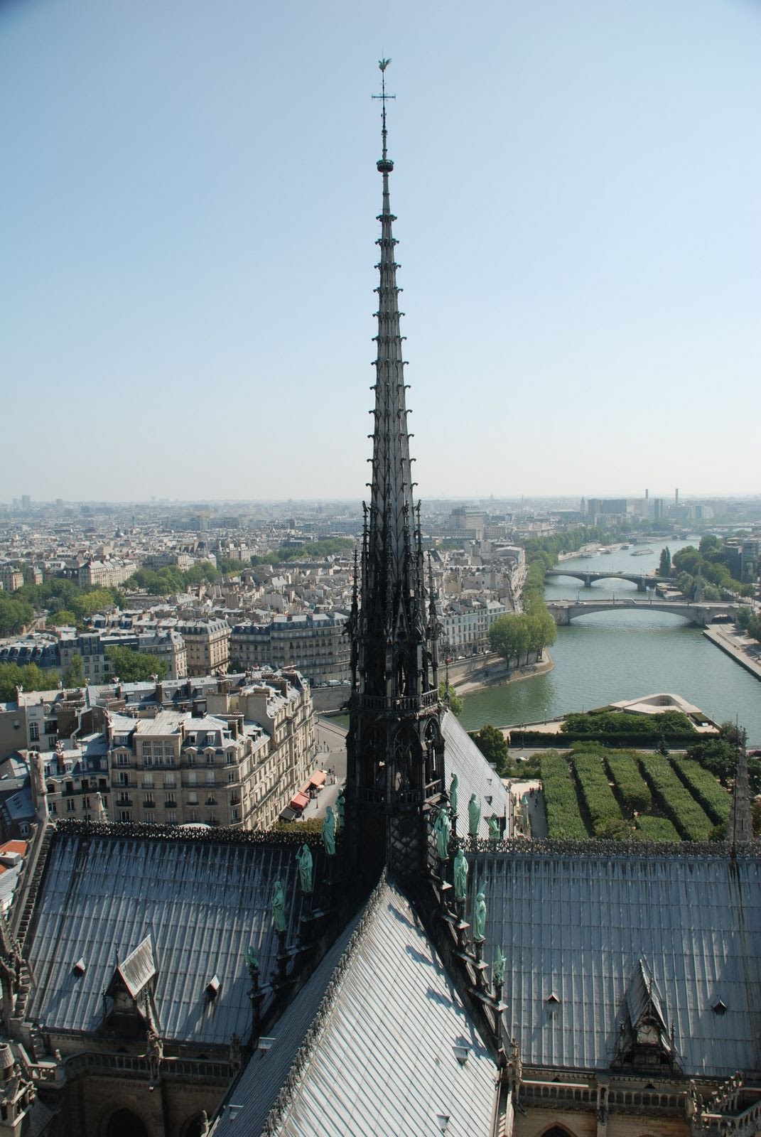 The greatest news that can be received after this terrible fire is that the Bell Tower has been saved and that much artwork was able to be rescued before the destructive fire reached them! Over two thirds of the roof has been destroyed. The cathedral was under a $6+ million dollar renovation – including the twelve apostle copper statues that once lined the roof – and it is believed the fire has started up in the “forest” of the wooden ceiling. The statues from the roof were removed last week – as part of this renovation.