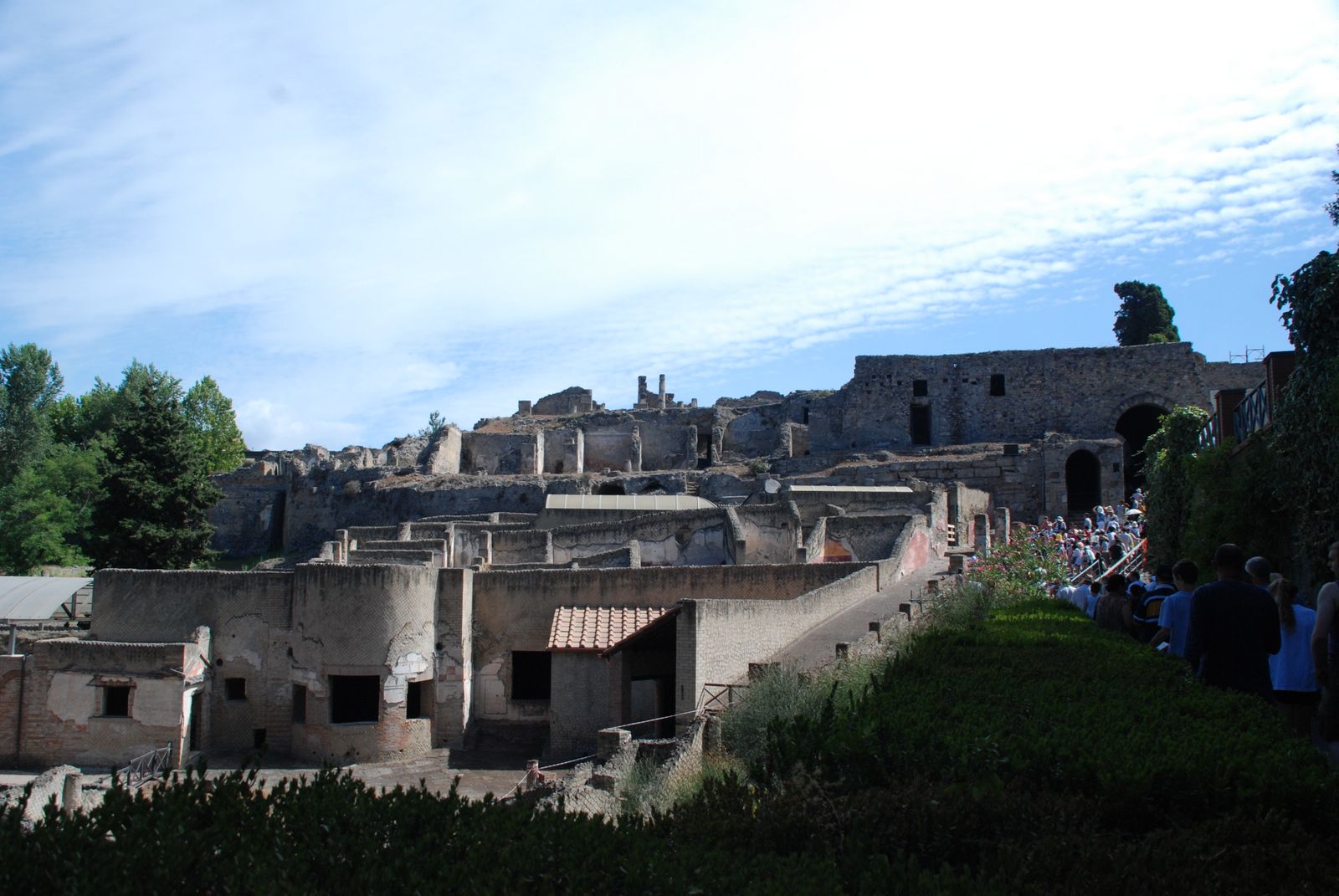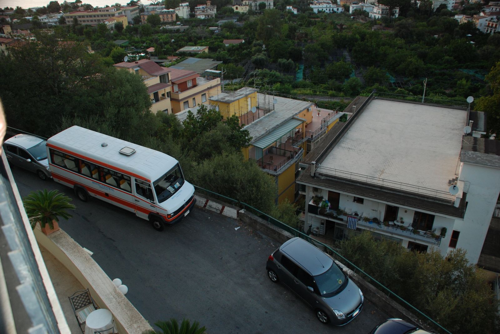Yesterday was an extremely long, extremely boring day! We got up a 6am, ate breakfast, then headed to the train station (via water bus!) We had to go to the main land to catch our train to Naples. We were early, but it was good, because we got to store our luggage in our compartment on the train. Sadly, one stop away from Venice, we picked up 3 lovely children (9, 6, 3) and their parents, who could not control them. I got kicked, a Kleenex thrown on me, and some kid kept pulling dads leg hair! Thank goodness they left in Rome, so we only had to ride with them for like 4 hours, instead of the 8 all the way down to Naples. In Roma, some slutty girls and their nasty male friends hopped in our cabin, because they didnt think anyone else would join, thank goodness our Indian friends came along and had seats next to us. These folks were just so nice, they told me to go to India and that it was safe in certain areas, so I should check, but that I could have a great time there. They were very nice, and were going to Pompeii and Herculaneum today, but we didnt see them. We finally made it to Naples, then had to find our car. Dad ROCKED! the driving through Naples. We missed one turn (my fault) otherwise, we were right on que! Dad just amazes me at his driving ability, I think it might have something to do with the fact he has to drive in Chicago a lot now. Our hotel is AMAZING! we have the most beautiful view of the city, and the bay. Oh goodness, its just wonderful! As soon as I have enough time I will label all my pictures, probably in September… (sorry)