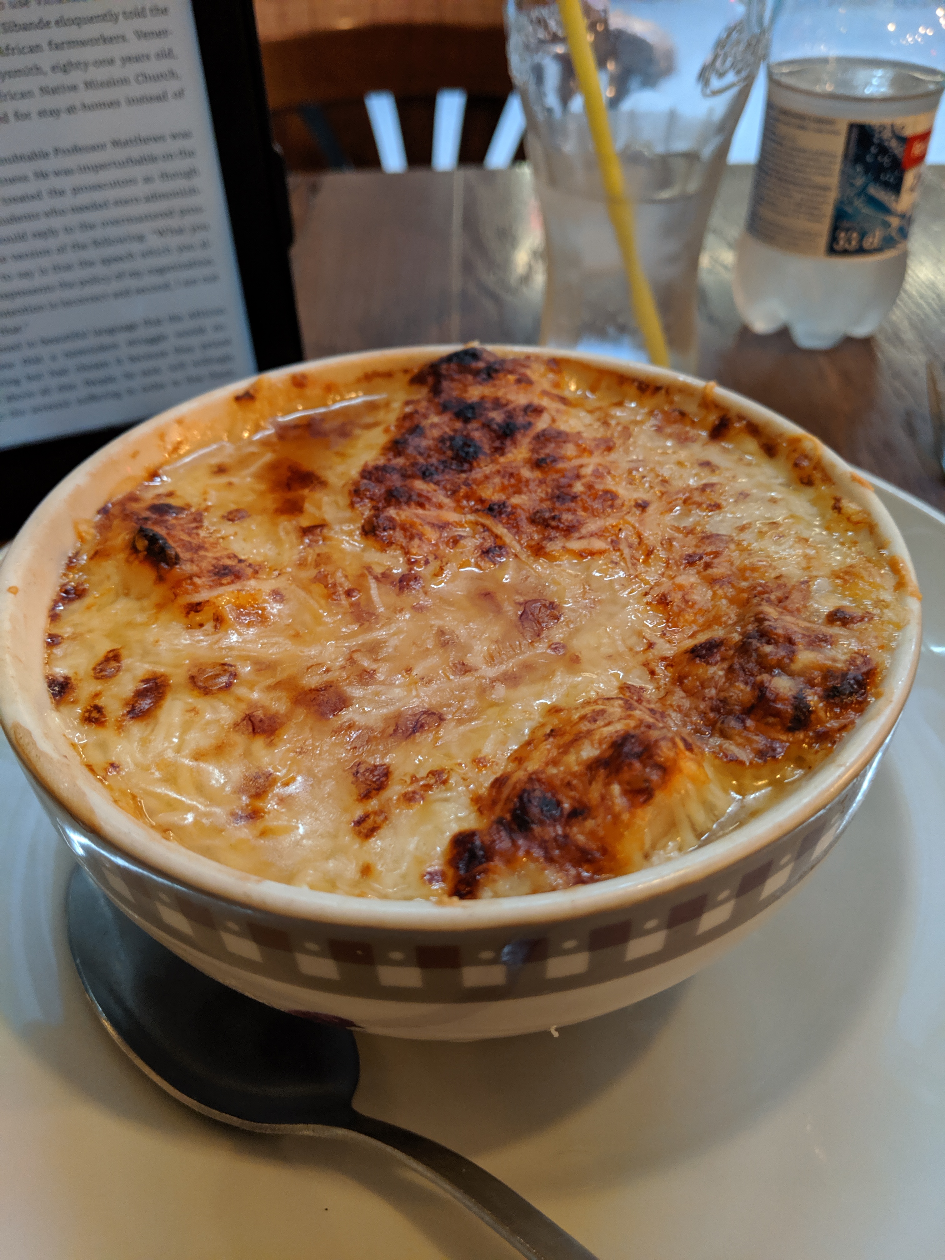 I ended up with the most amazing onion soup, some cheesy pasta (duh) and a crème brule. I wanted a 7up but they only had Limonade – which ended up being a more lemony 7up – it was good.