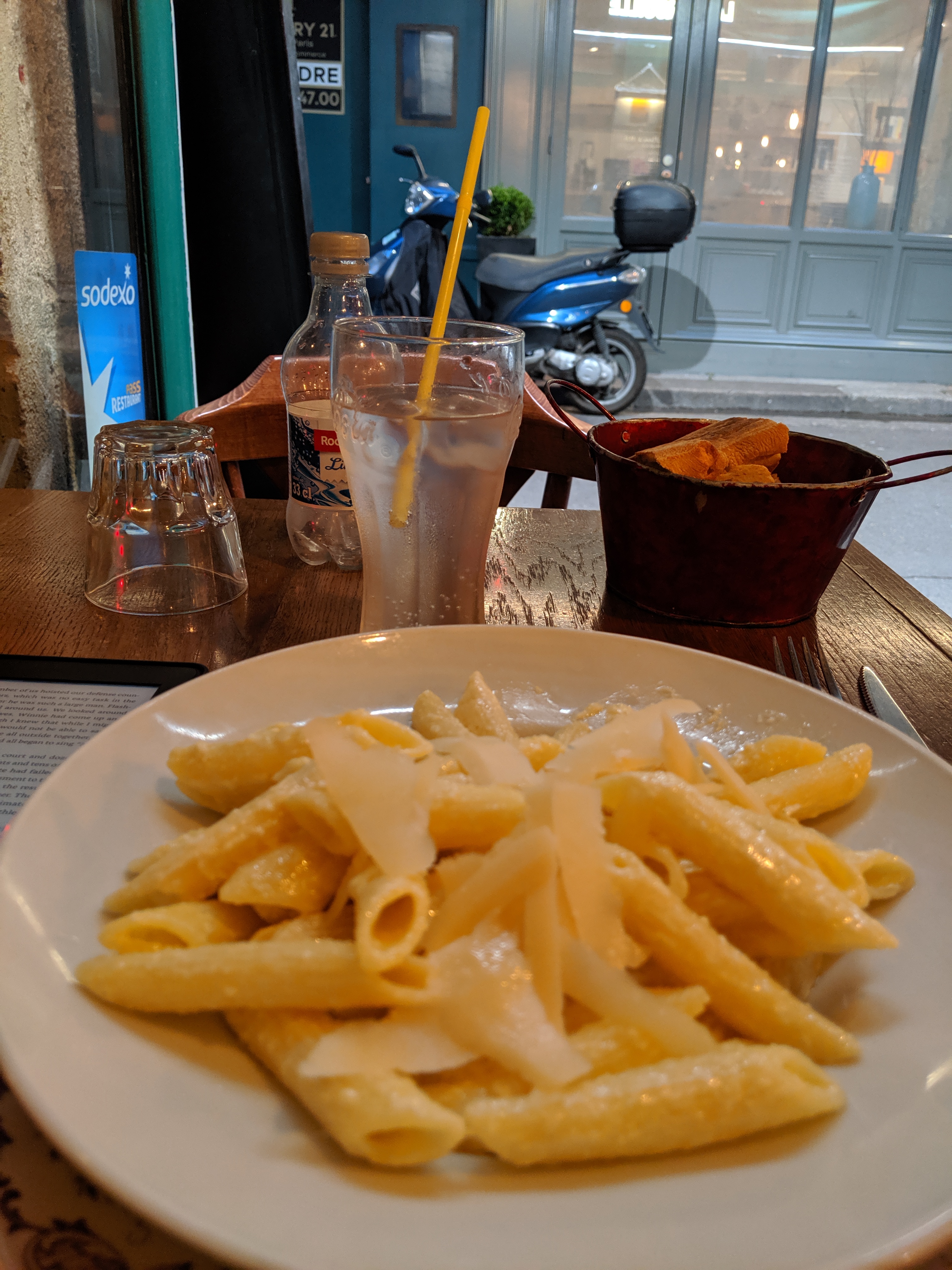 After my troubleshooting I went to read in the park behind Note Dame. I spent some time there before my work phone started to ring – and the work didn’t stop so I decided to head back to the hotel to eal with work. I worked until about 8pm and decided to go get food – I actually used Google maps to find some good food and settled on a French place one street over.
