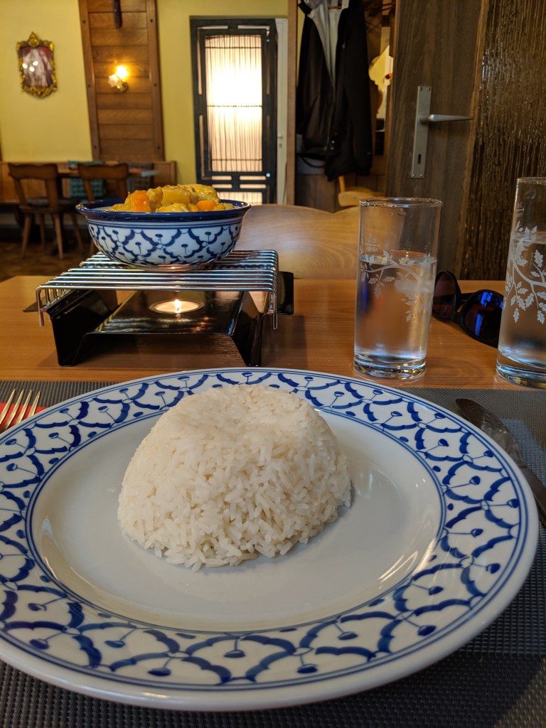 Regardless I made the quick walk to Thai and was the only one there, but the best part about Thai food is it is the same in every country, including Thailand! I ordered my food and started reading my book (it is very long, very, very long) and all of a sudden people started filing in. Clearly, I picked a good spot – I just got there a bit early. While I was there, the rain came down in buckets – it was crazy! I am glad I was inside for sure.