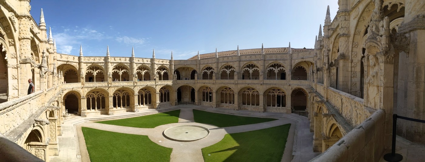 After breakfast, off we went! We hopped on the tram right outside our hotel – the goal was to get to Mosteiro dos Jeronimos. It was about a 20 minute ride on the tram and right before our stop we noticed a park with a statue so when we got off we backtracked to that park to take pictures and also to kill some time because the monastery wasnt yet open. We had about 20 minutes to kill before opening and there was a queue forming already. We decided to walk over once we saw the people moving.