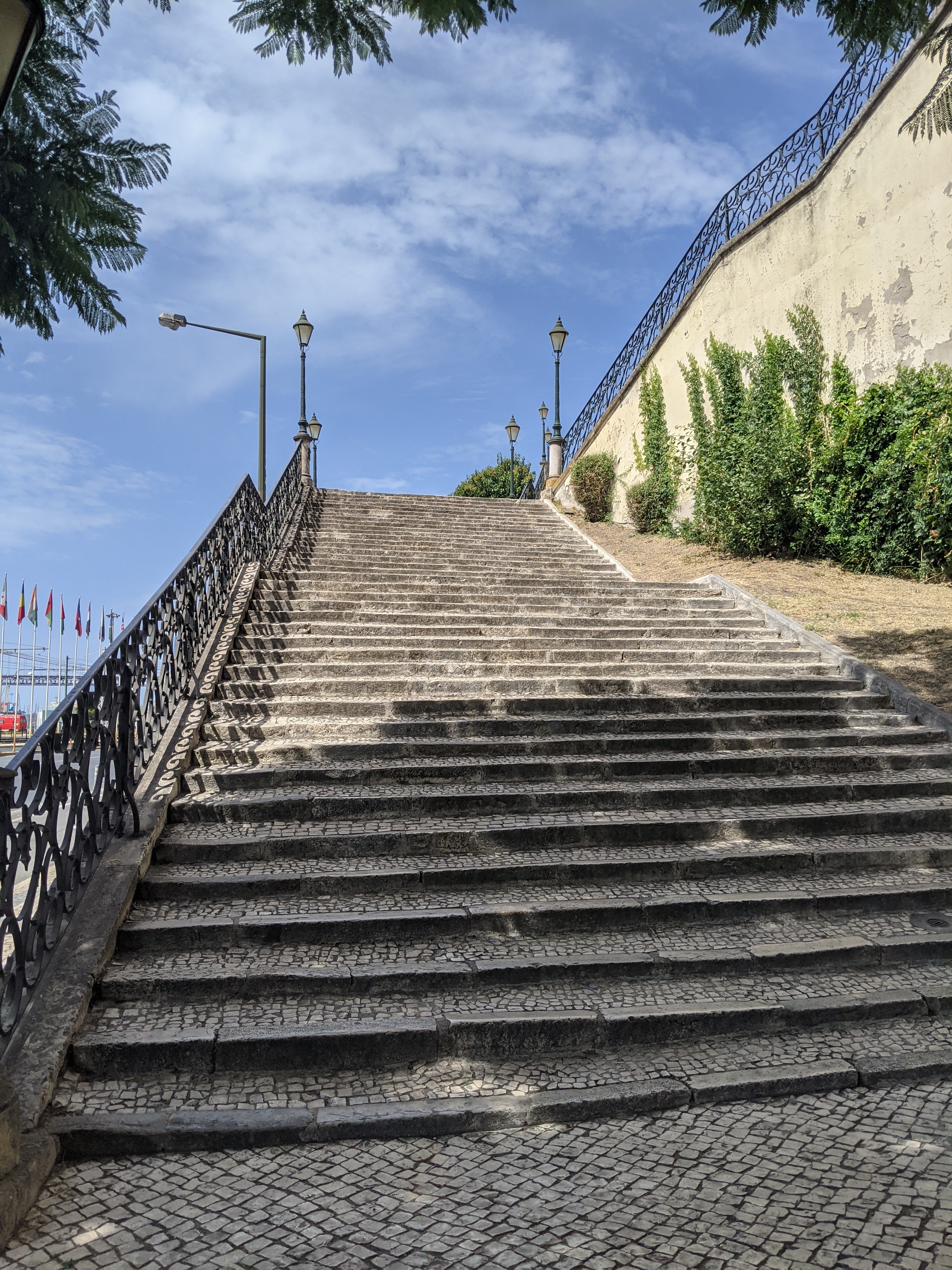 After our break we went to the last museum we planned to see here in Lisbon, the tile museum. They made a QR code out of tiles that would link you to their audio tour (we didnt download it, neither of us had headphones). Anyway, it was pretty cool. Lots of tile art and lots of stairs. There were also two sets of bone set ups in the chapel. By the way, many of the museums here are in old monastery – they make an excellent location for museums as they have many rooms and have a flow to them.