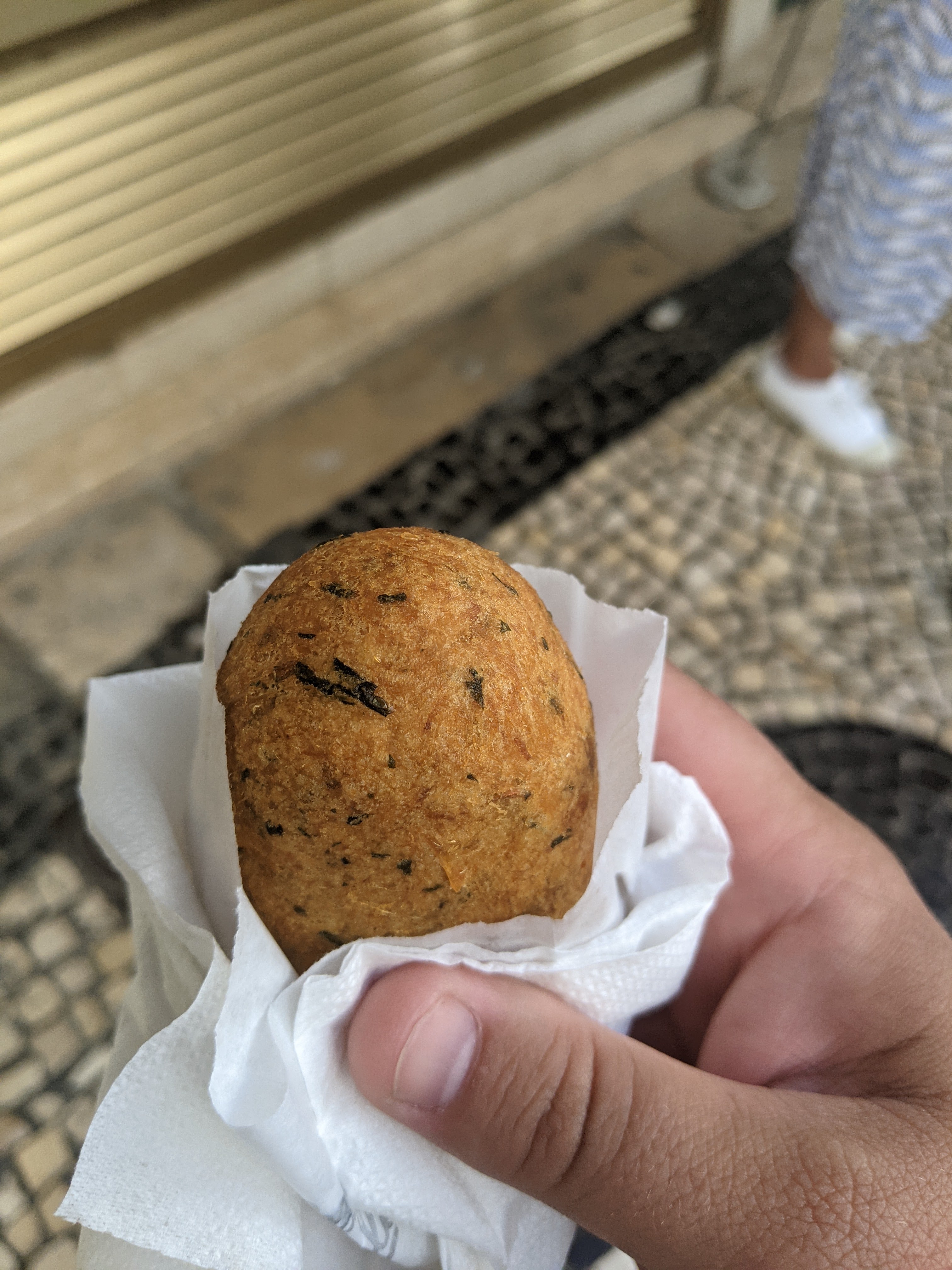 We got back to the hotel and decided on a snack before taking a break. I got a code fish ball (cheese, dough, codfish) because its a staple here and Chris got gelato and some pastries for our drive tomorrow.