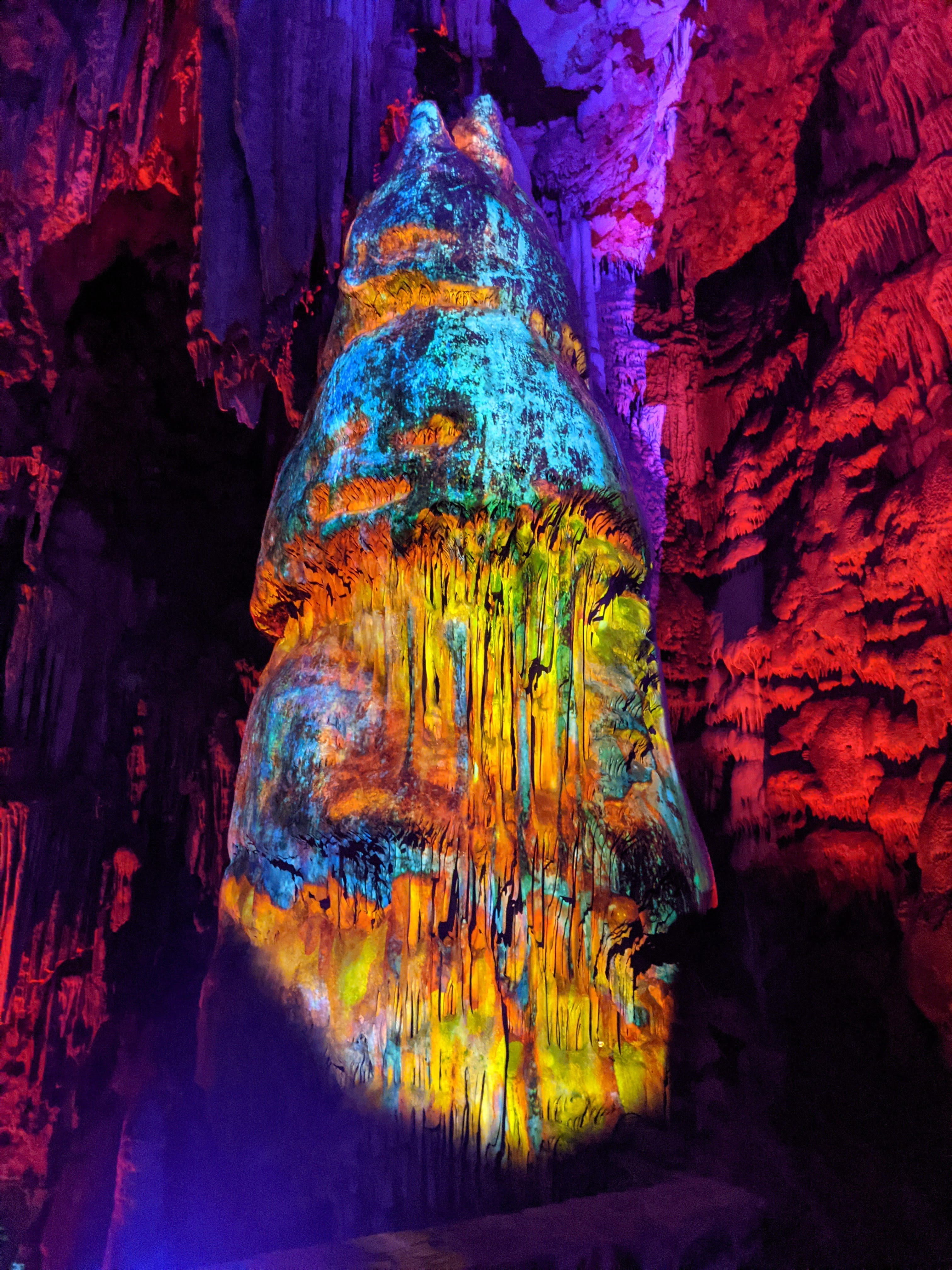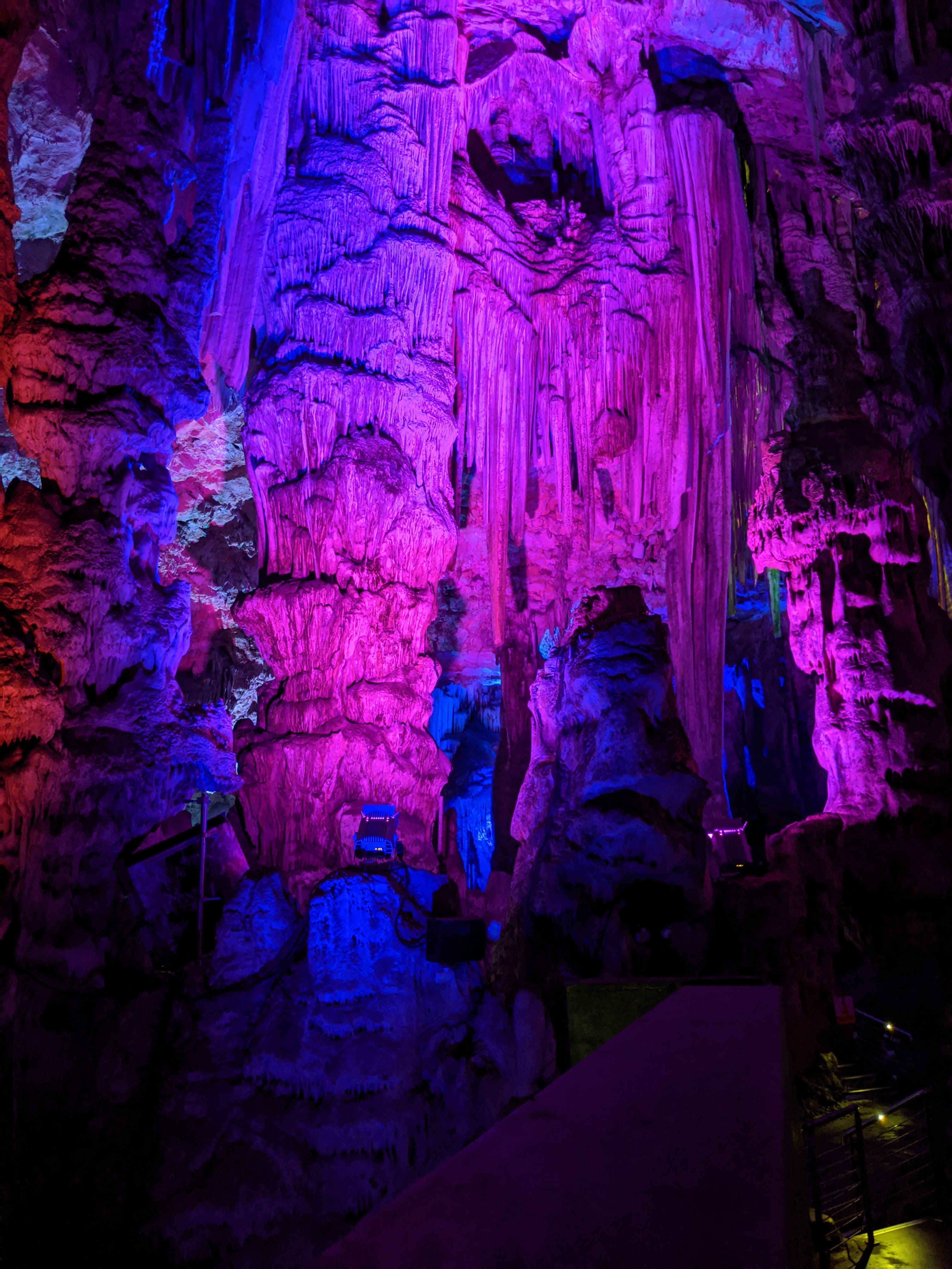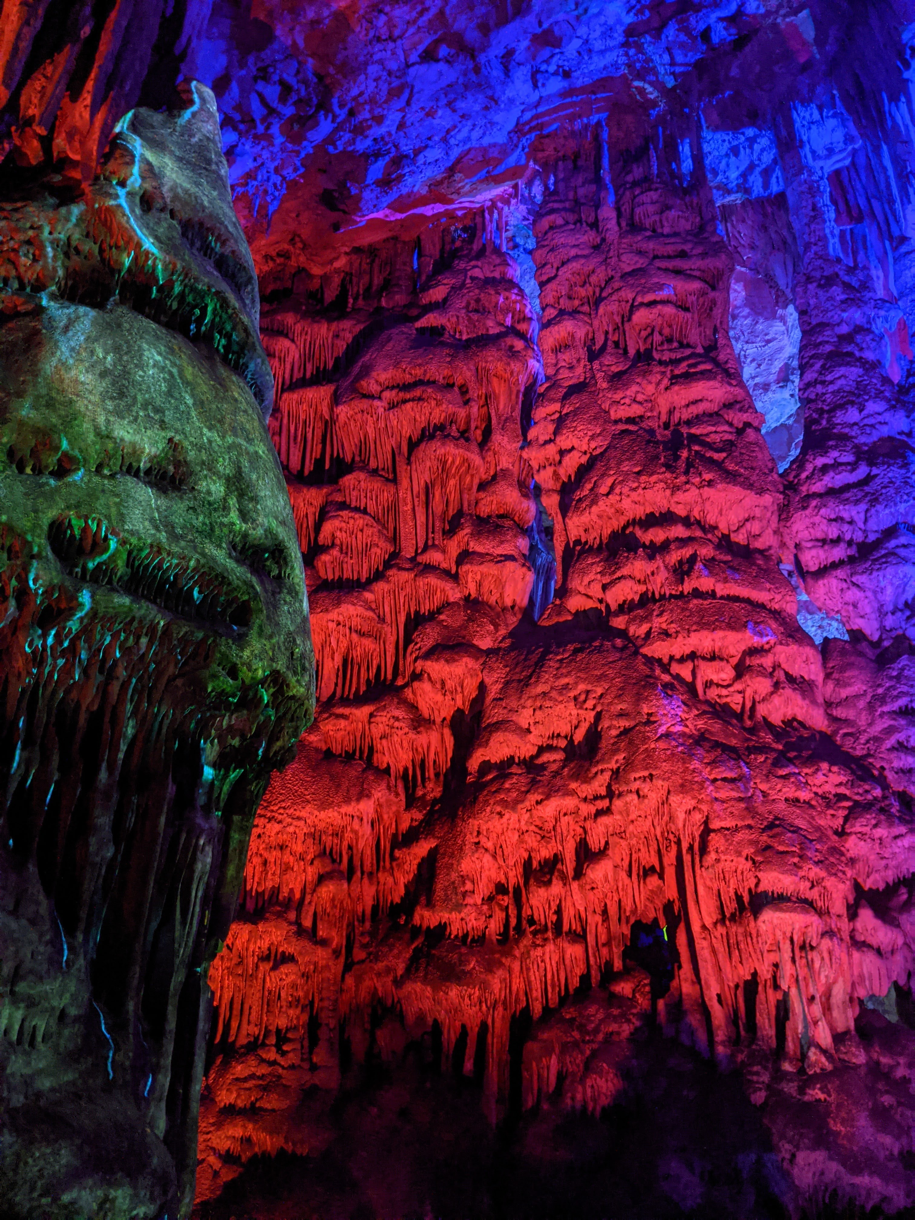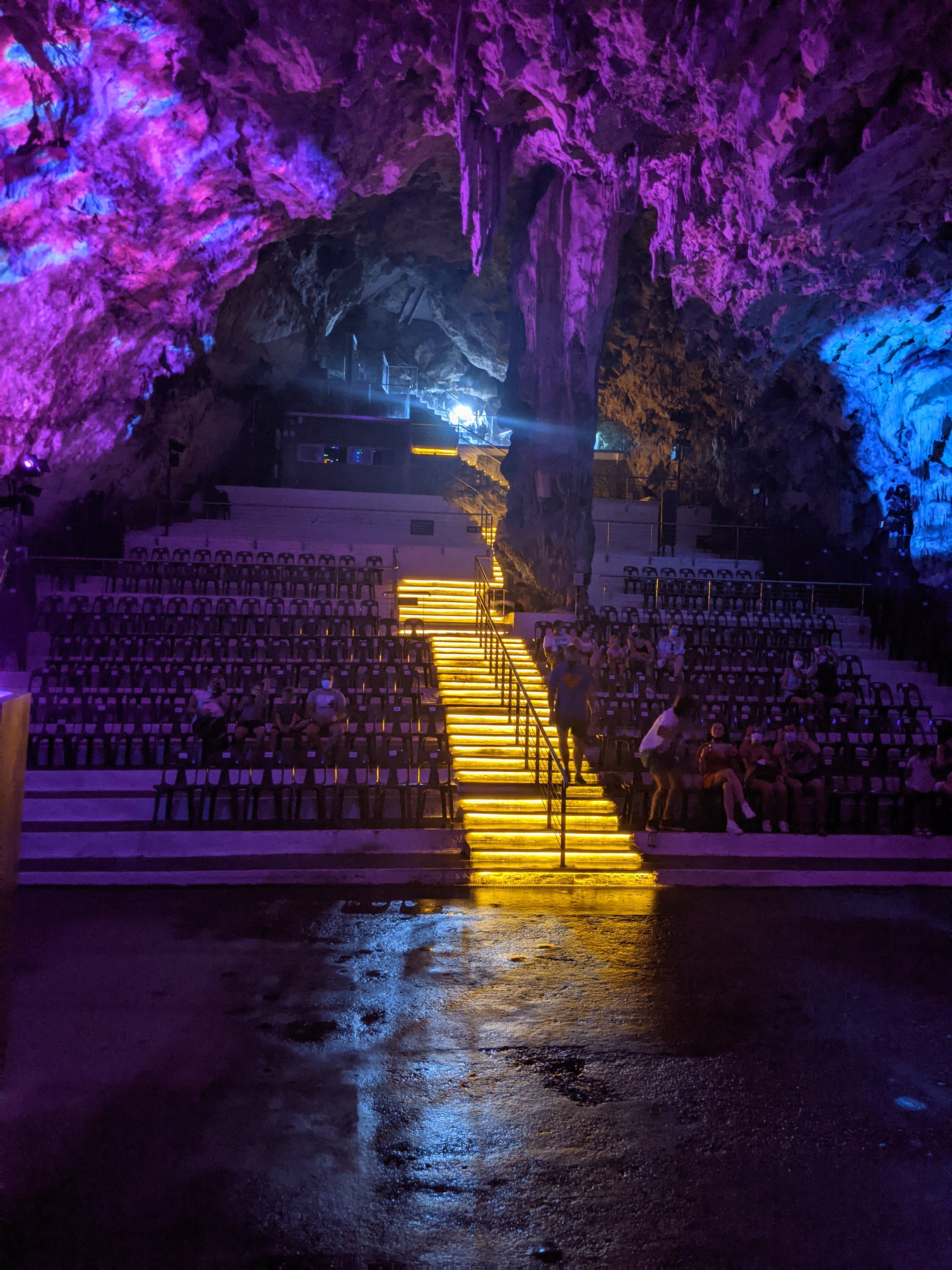 First stop was the cave, it was amazing. They do this light show on the stalagmites and stalactites and it brings them to life. Recently they added sound to that show and its just amazing. The acoustics in there are phenomenal. They have chairs and rows set up for concerts that happen in the summer under normal conditions.