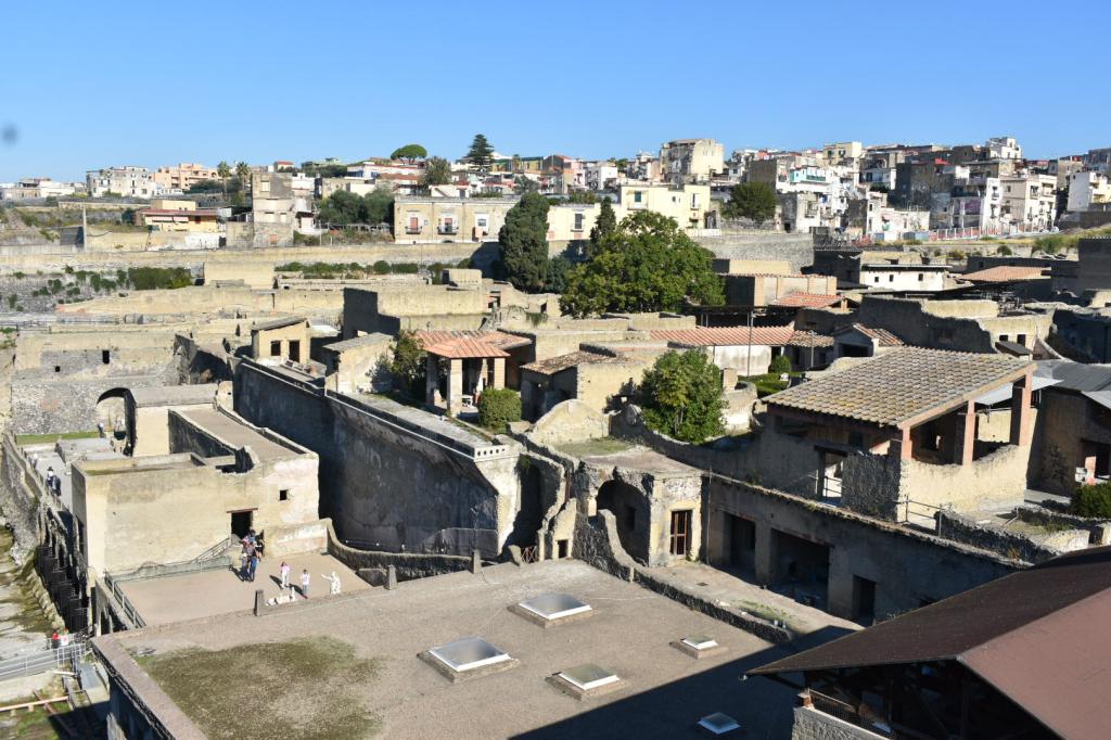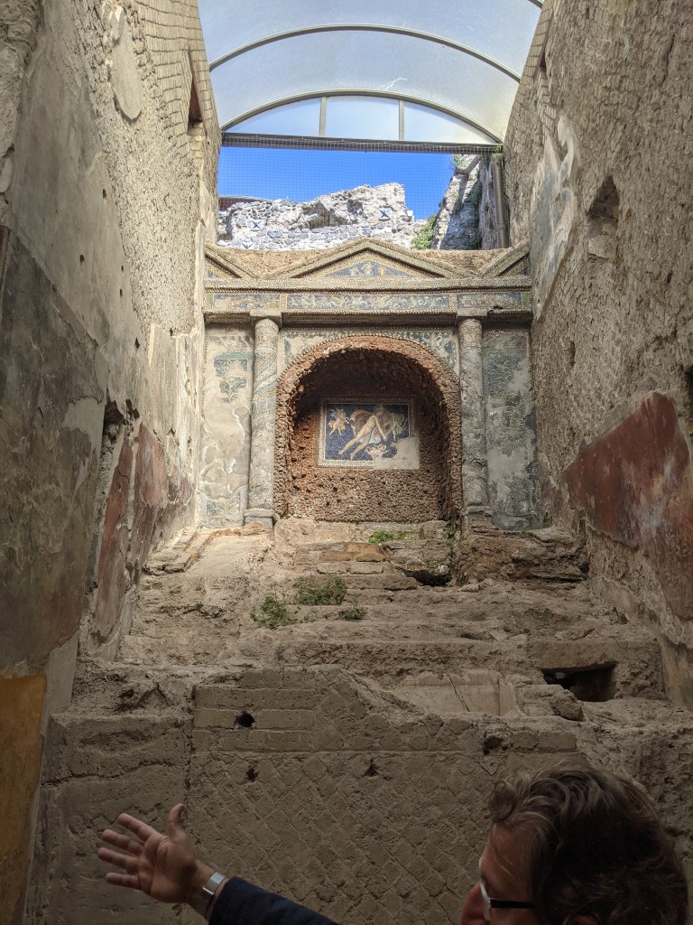 We didnt get a guide for this site, just meandered around ourselves. Its so small compared to Pompeii, but so well put together and a lot of it is preserved. However, it really is just beginning to be “found.” Walls hold back the current city, but stop the excavation from continuing. We were able to make it through the town in about 90 minutes.