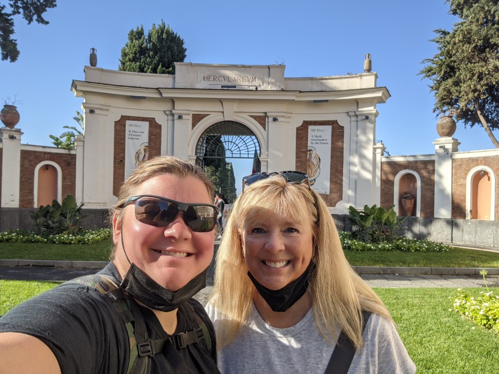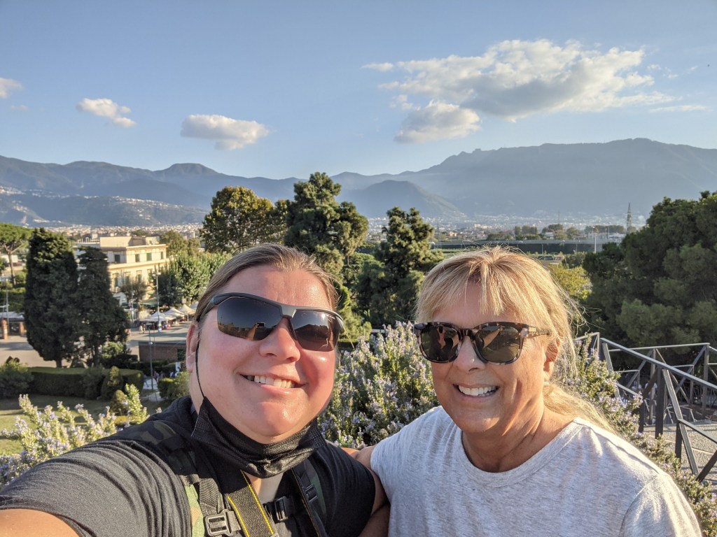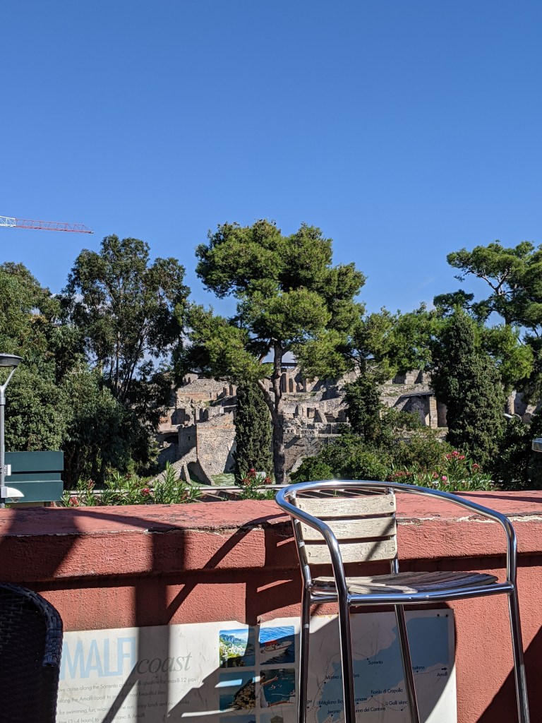 Today we headed to Herculaneum and Pompeii. But first, breakfast! The hotel offered a buffet, moms first experience. I got the usual – eggs, cheese and yogurt. Mom got yogurt, pastries, some meat. It was a nice way to start the day, especially because of the view!