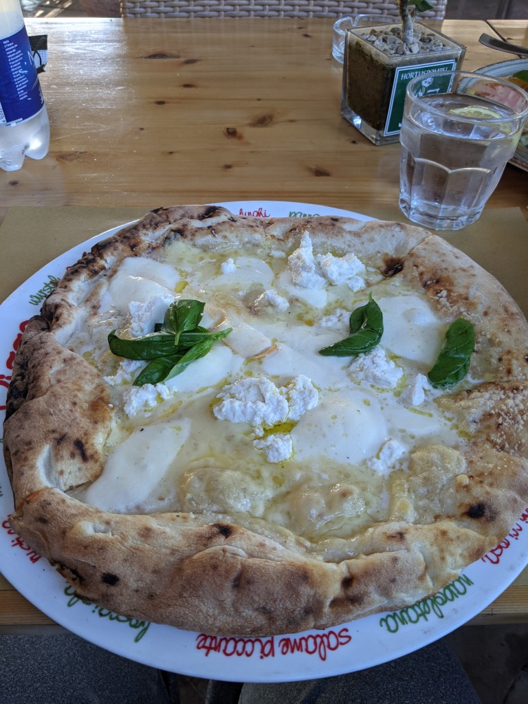 After Pompeii we went to eat at the restaurant at the entrance, Roberto had recommended it. And the food was AWESOME!! I got a 4 cheese pizza and a caprese salad. It was so good – I think they mozzarella was homemade. They gave us a shot of limoncello at the end of dinner and then I got a frozen orange slushy to go.