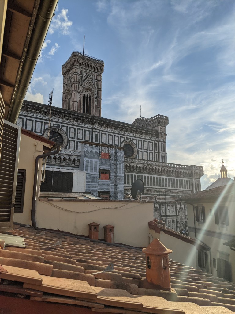 Our hotel is so cool – I thought we were getting a tiny room with little twin beds far away from each other with a partial view of the Duomo – instead we got the usual 2 twin beds pushed together – with a partial view of the Duomo – and a BALCONY!! Its so pretty!! Its so awesome!!
