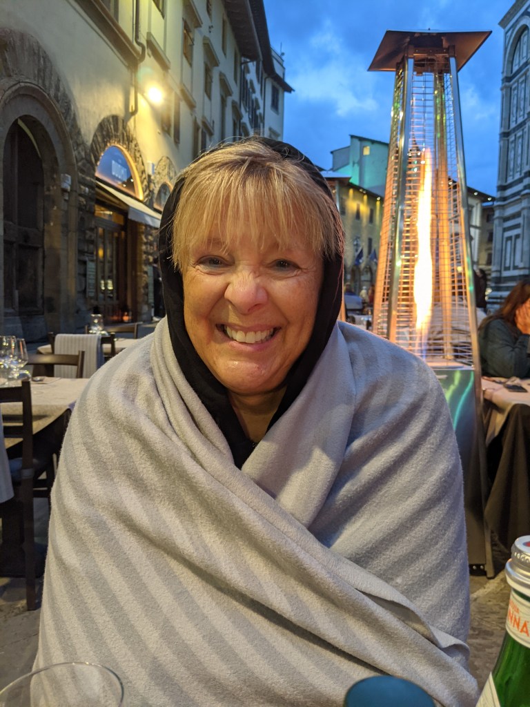 After mom showered we went for dinner! Ate in the shadow (until it was too dark) of the Duomo. It started to get cold, so the heater and the blankets kept us warm! It was so lovely. The food was also yummy! Probably the best we have had!