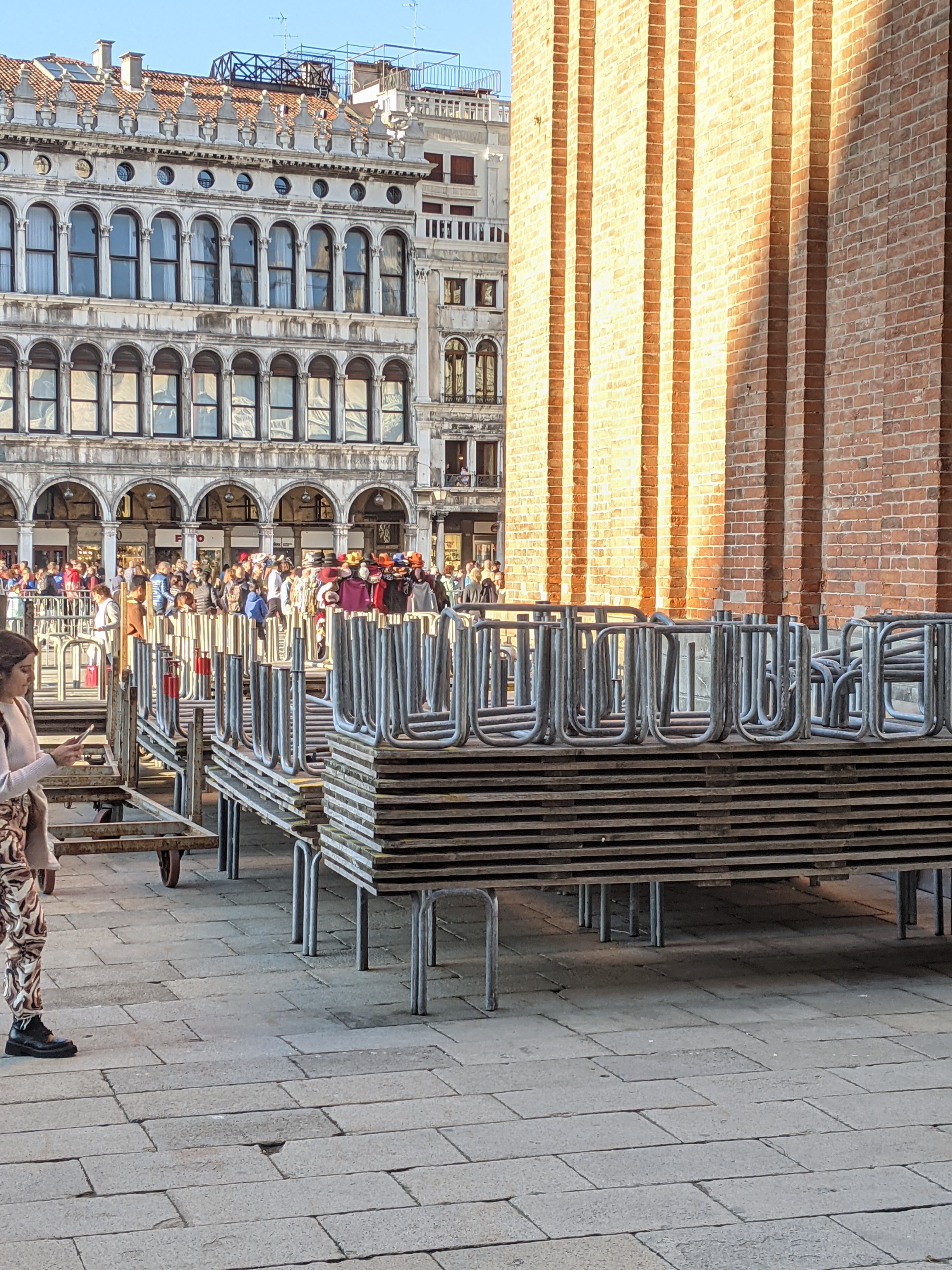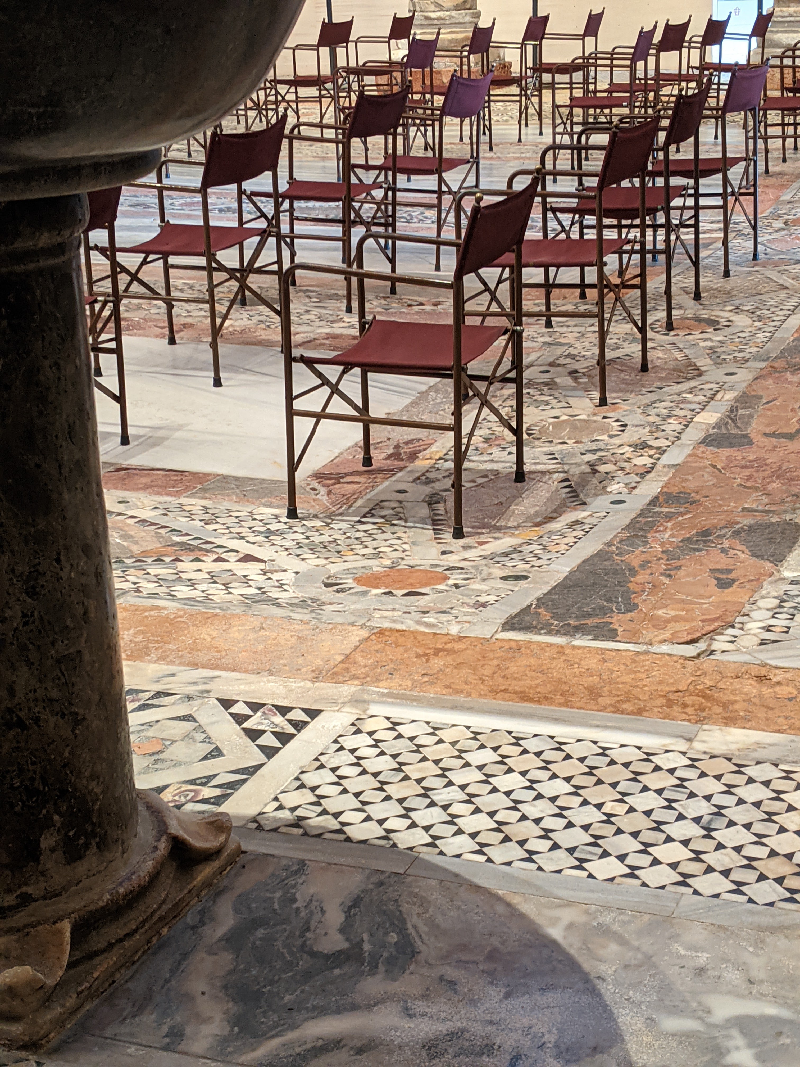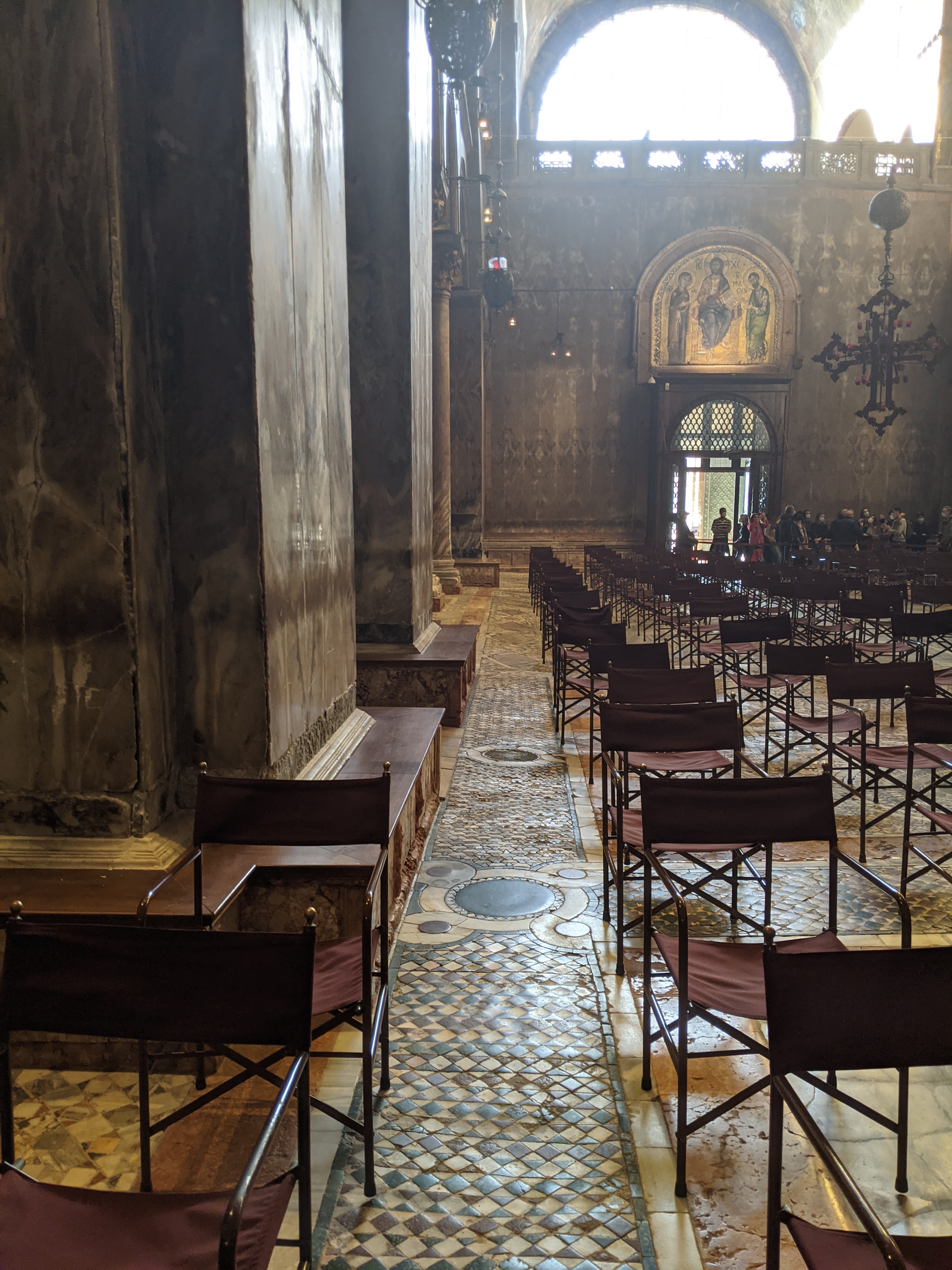 We got into the church after a vaccine check and a temp check. The floors werent as wavy as I remember – but it was still cool to see. I also forgot how beautiful the ceilings were decorated. In November of 2019 – they had a major flood that did some damage to the floors so they raised money to have them worked on. Shockingly – the work has already started. Not shockingly, its not even close to being done. Italians are known for taking FOREVER to get anything done.