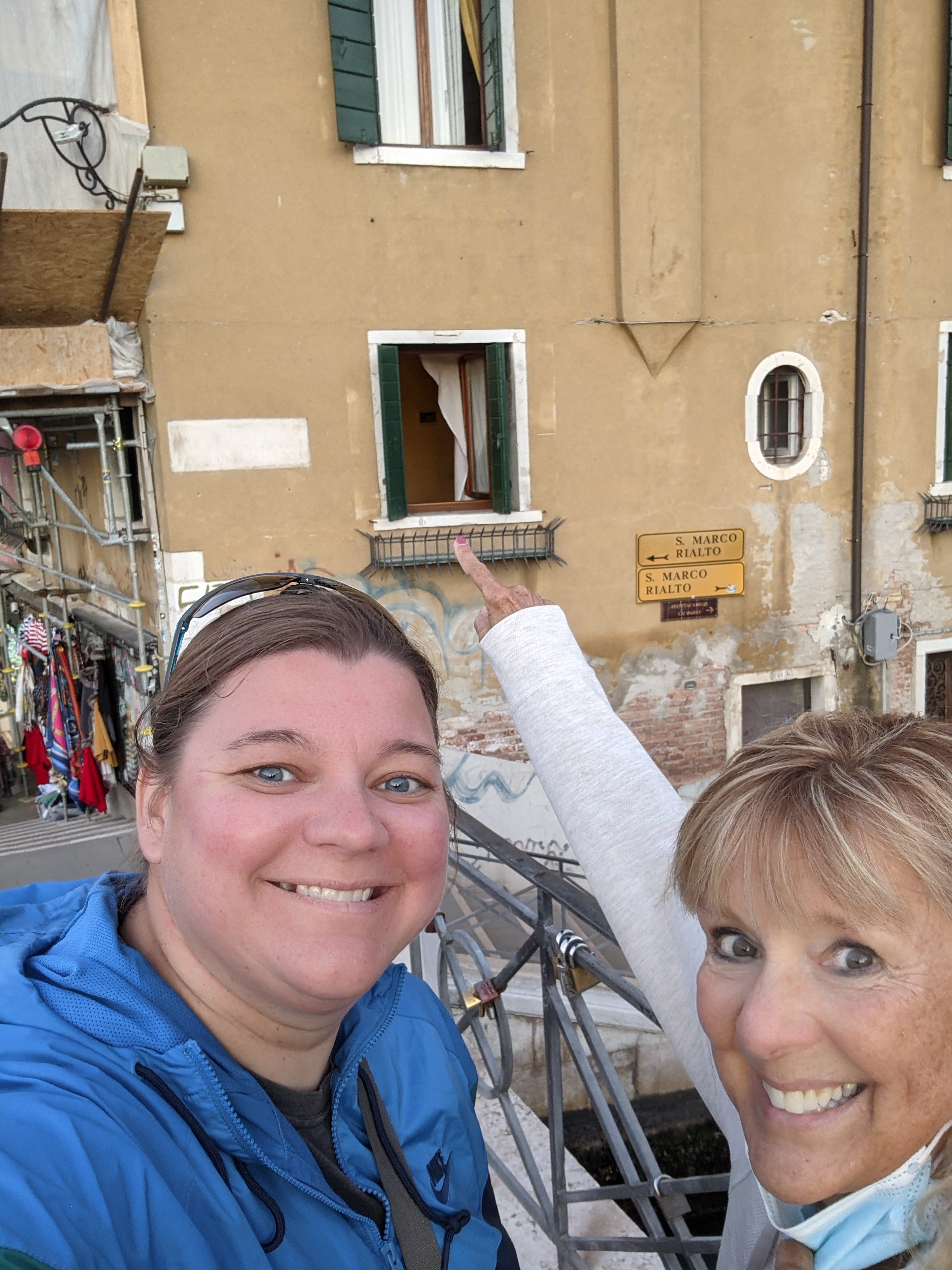 We had a quick walk, over the grand canal to our hotel. Thankfully we keep getting lucky and getting rooms only one flight up so we arent stuck lugging our bags up lots of stairs. We got a corner room with THREE windows (one of them was in our shower). The front of the building is being redone so one of the windows didnt open, but the other two did and we had a view of a couple bridges and the grand canal. It is awesome!