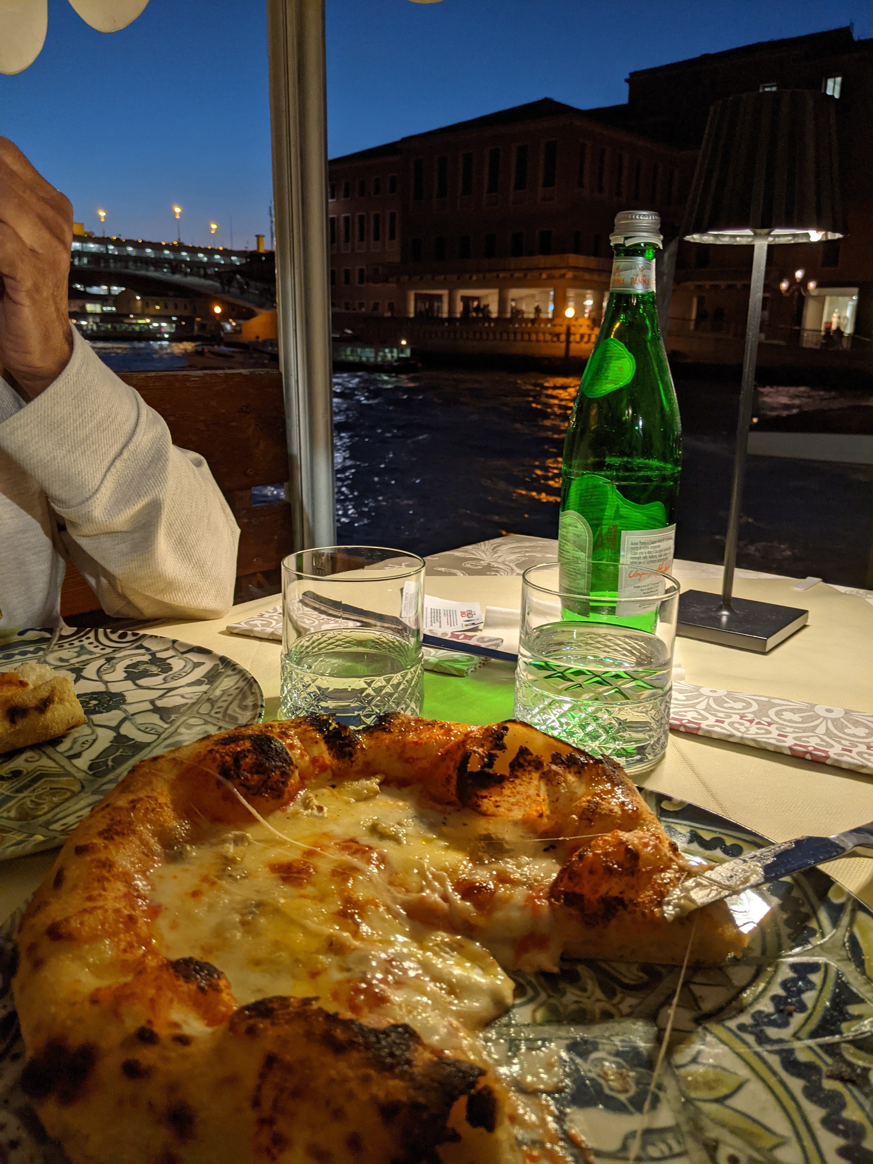 We unloaded our stuff and headed out on foot to St. Marks Square so we could go to the basilica and see the wavy floors. After about 15 minutes we stopped at what ended up being our favorite meal so far on the trip – by far! We started with bruschetta, mom had lasagna and I had 4 cheese gnocchi. It was just wonderful.