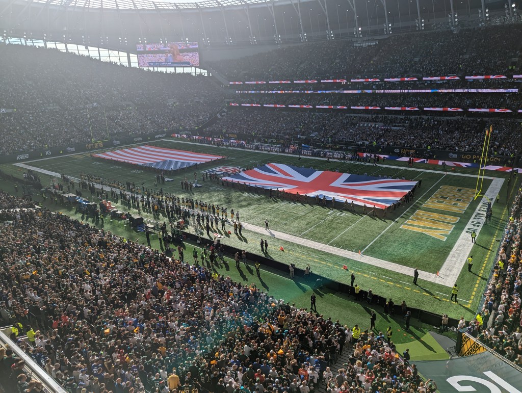 Right as the game was getting ready to start a man named Keith sat next to me. Both of us are Packer fans and he was originally from Kenosha! We chatted and watched the Star Spangled Banner and God Save the King and the game started.