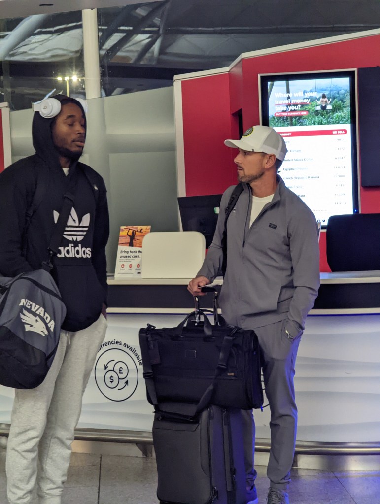 Once through security, I was able to walk with a player down the hall. I thanked him for the bucket list opportunity, regardless of the loss, I would never forget it. He was very kind and humble. We came upon another rope line and he went behind it with the Virgin Atlantic flight attendant guiding players. I decided to stop at the rope line and move to the end to see if I could catch a glimpse of Aaron Jones or Aaron Rodgers.