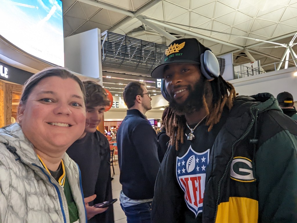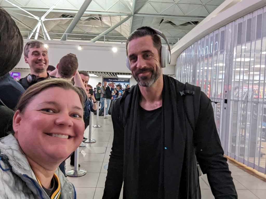 And about 5 minutes before I needed to leave for the gate, here comes Aaron Rodgers! He also was kind and signed autographs and took selfies. As a person, I don’t care for him at all, but as a player, he is exciting to watch and a leader (though not always kind).