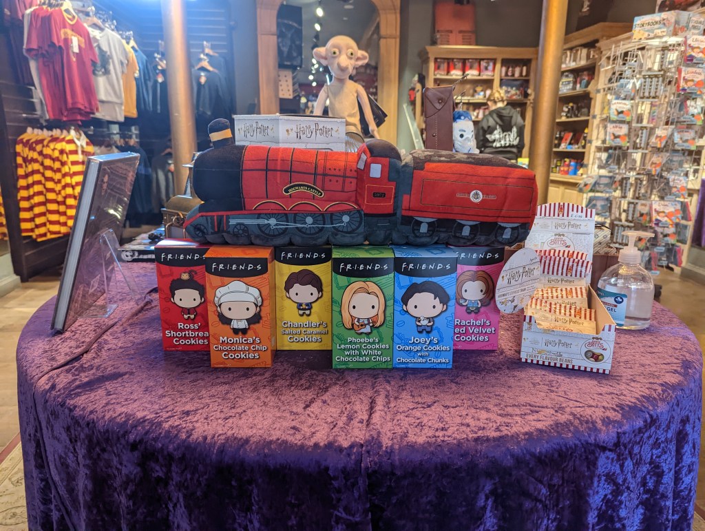We stopped at gift shops and then found a “Harry Potter” store. I didn’t want to go in, but we ended up going in anyway. And the first thing I saw was Friends cookies!! That’s right, they had Friends items!! So, of course, I had to buy them. They also had warm drink mixes and I bought some of those as well. All this from a store I didn’t even want to go in!