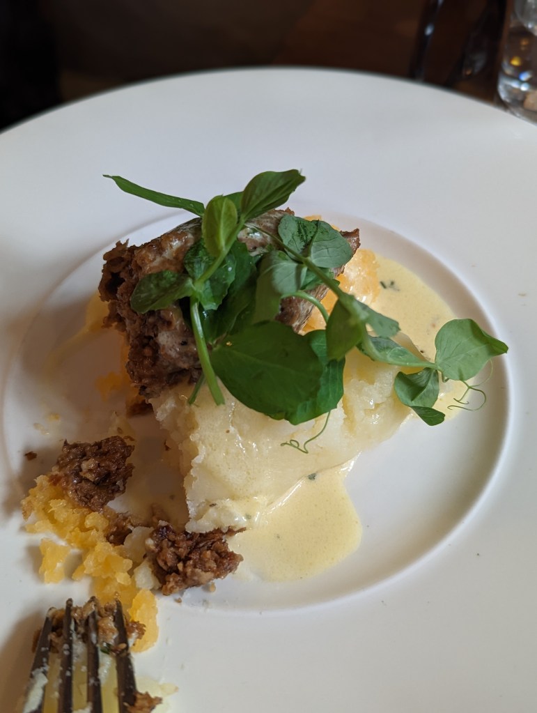 After that, we headed to lunch. It was called Howie’s. And it was so good! We got soup, bread, olive tamponade, vegetarian haggis (wow), and fries. The soup was a sweet potato “chili” but in reality, it was like cream of sweet potato and it was wonderful. It has been chilly weather and the warm soup was nice to warm the insides! The bread was homemade and the tamponade was perfect! The vegetarian haggis was served with a rutabaga mash and mashed potatoes. It was very flavorful. So glad to have tried a version of haggis since that’s a thing here, but neither of us actually eats that kind of thing.
