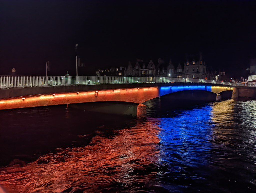 After all the shopping and lunch we headed back to our hotel to drop off our new purchases and then head to the bus station for our trip to Inverness. Lauren had done all the transportation organization yesterday while I was at the game, so I’m thankful she was able to find us a way to get there in spite of the strike. I’d never been on a Megabus (turns out we took the local version, booked through Megabus). I wasn’t disappointed. It was a comfortable ride with chargers, phone holders, and plenty of room. However, the customers could be interesting. We had decided not to wear masks and almost instantly regretted it. A guy across the aisle was non-stop coughing. I’m sure it was because he was a smoker (he commented to his friend about it) but damn, his lung may have ended up outside his body. He was older but made me uncomfortable. At the transfer stop, we decided to put masks on. We boarded the bus before the man did and were excited because the seats we picked made it seem like he wouldn’t be able to be near us. However, that was not the case. He and his friend found a seat near us and the coughing continued. We felt much more comfortable with our mask situation though.