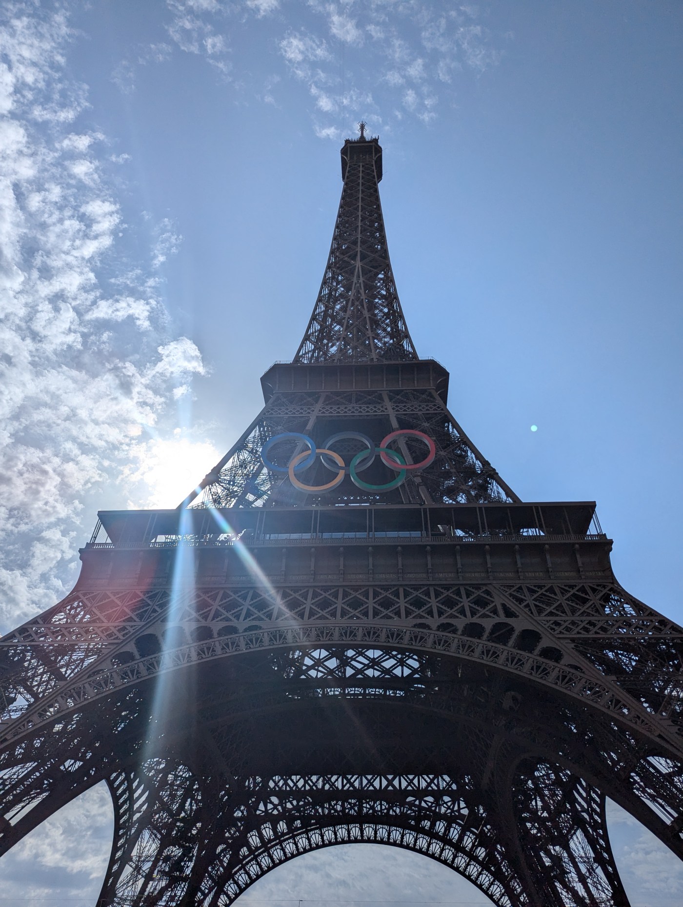 After Notre Dame I headed to the Eiffel tower. I knew it would be very different than usual and I was very right. The park south of the tower is one of my favorite spots to people watch, but it’s been turned into a stadium for beach volleyball and judo. I walked along the river route and got to see from a distance the medal venue. They had a road race set up, but I assumed it wasn’t going to be used today.