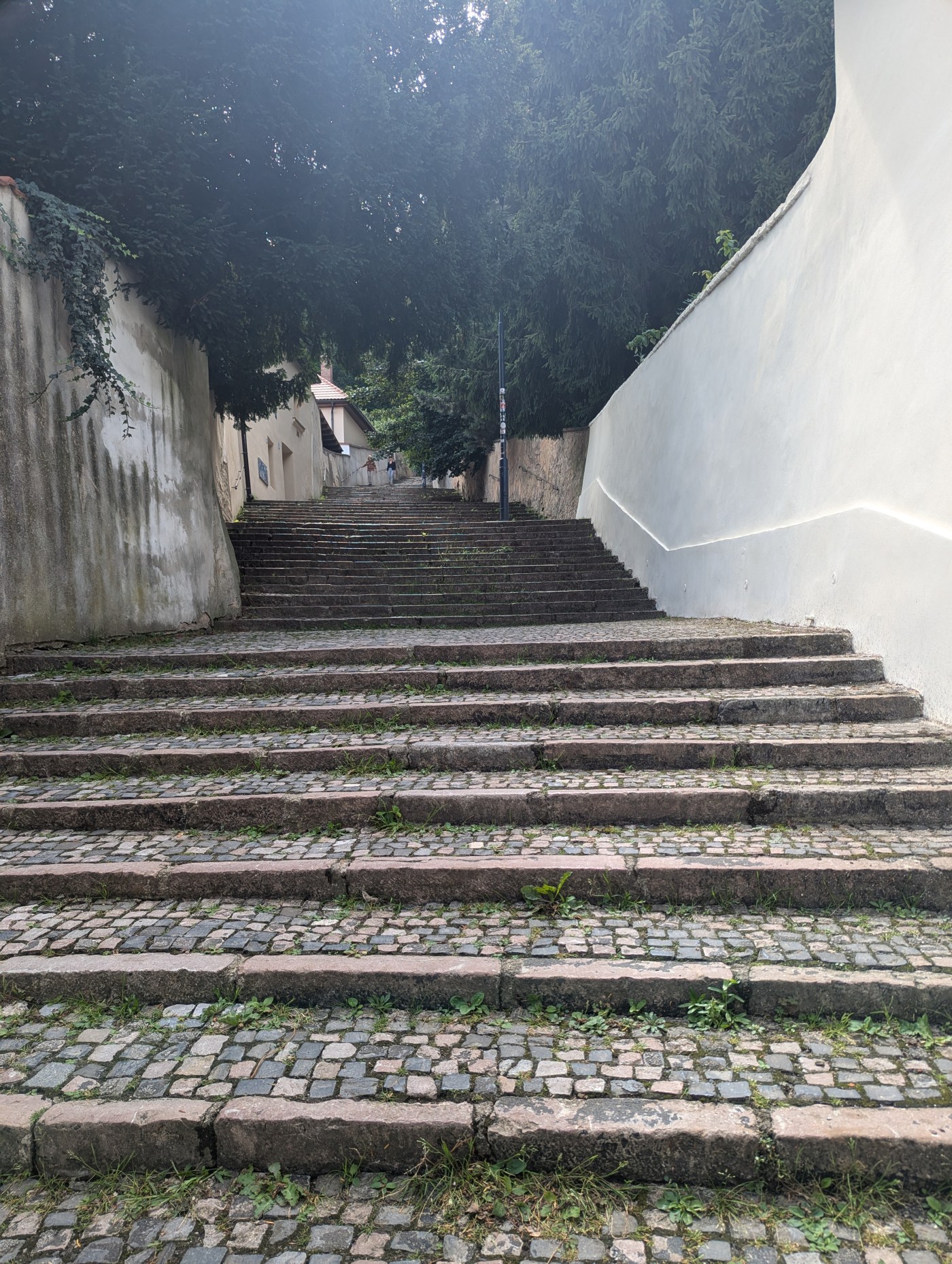 I basically met PB at the top of the hill near Petrin tower. At least these stairs are in the middle of a park, made the view while climbing a bit nicer. PB wasnt nearly as excited as I was to go up the tower – and ya know with his fear of heights, I was very impressed as the stairs are open to the outside! At least in this tower there are two sets of stairs, both an up and down.