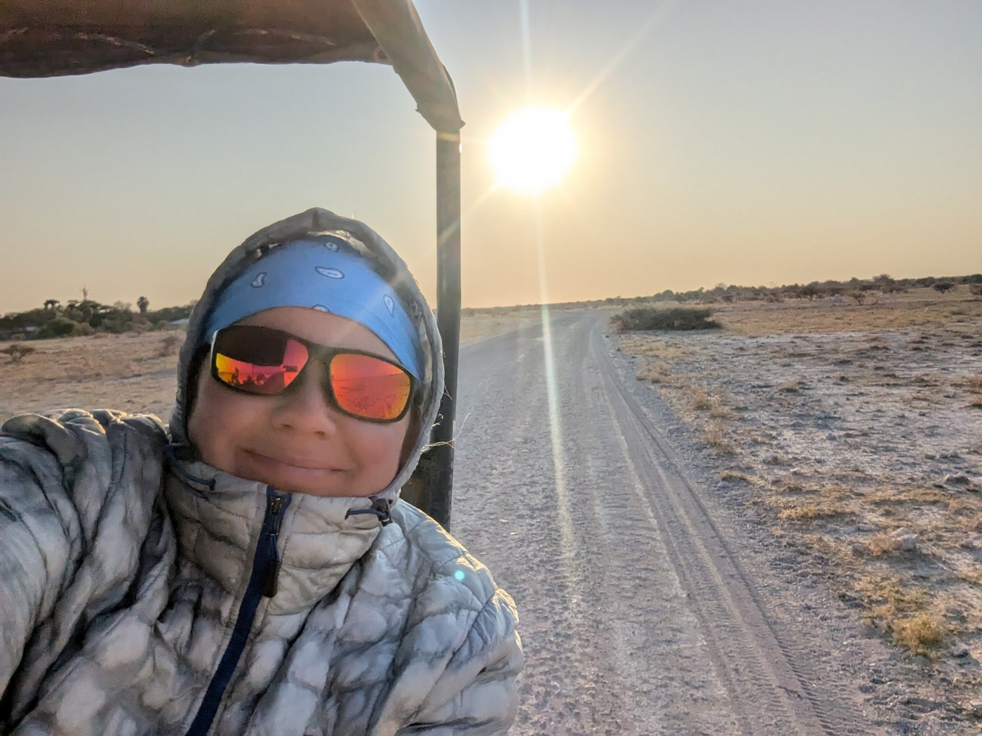 Today we headed out at 730. The group ended up splitting up, seven of us in an open 4×4 and the other nine were staying in the bus. I went on the 4×4, because today is an all day game drive through Etosha Park. After yesterday’s half day game drive in the van, I couldn’t imagine staying in for eight hours.