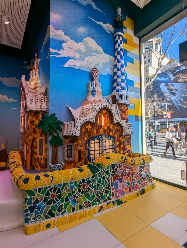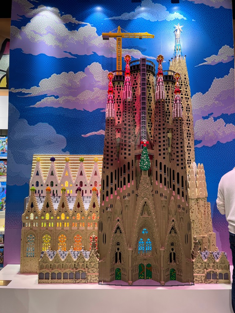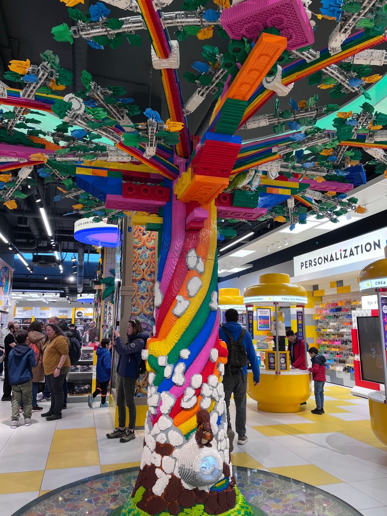 We took our time this morning packing and heading down to breakfast. After breakfast we did one last sweep of the room and brought our bags down to the lockers to store them while we shopped. We headed to the flagship Zara store and Lauren found a couple things that will be fun to figure out how to add to her luggage. We hit up H&M as well – but neither of us found anything there either. I checked out the Nike store while she hit up Zara home. We stopped in another Lego store too – this one was much larger and had even cooler Lego art. We didnt get anything this time though, everything was significantly more expensive in this store and we had already gotten our figures. It was a successful shopping outting.