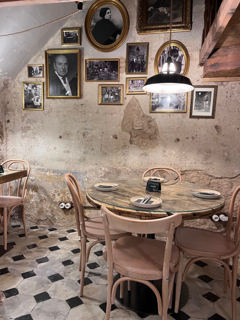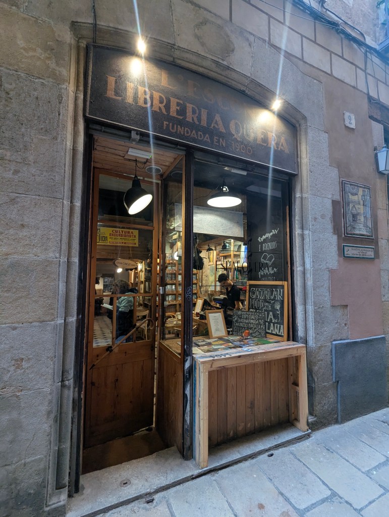 We needed to get a few more things on Lauren’s list and my magnets and stickers for my collections. We successfully collected our items for souveniers and decided to grab one last lunch. And man did Lauren deliver. We got to eat in the OLDEST bookstore in Barcelona. It is technically still a bookstore, but its tiny and pretty much only has hiking and nature books to sell, besides the restaurant that they now run.